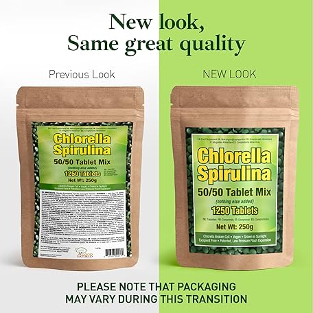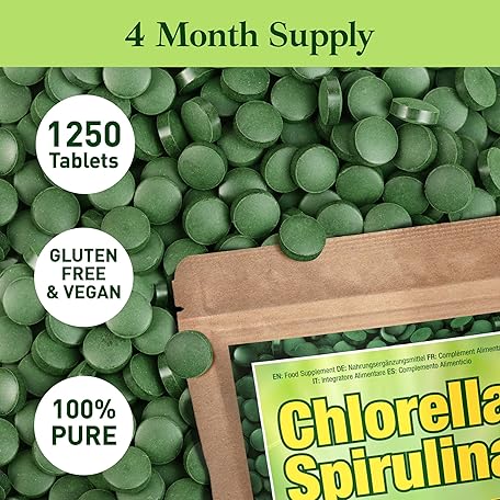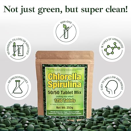 Thông tin sản phẩm Good Natured Premium Spirulina and Chlorella Capsules 1,250 Tablets, Non-GMO, Vegan Organic Chlorella Tablets, Sunlight Grown, Cracked Cell Wall, High Protein, Heavy Metal Detox