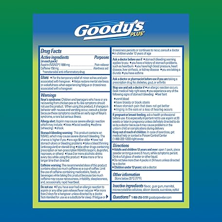 Goody's Headache Relief Plus Mental Alertness Powder, with Aspirin and Caffeine, Strawberry Citrus Flavor, 16 Count