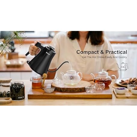Thông tin sản phẩm Gooseneck Electric Kettle 0.8L - Matte Black Tea Kettle with Auto Shut Off, Boil-Dry Protection & BPA-Free, Precision Electric Water Kettle for Pour Over Coffee