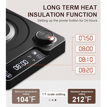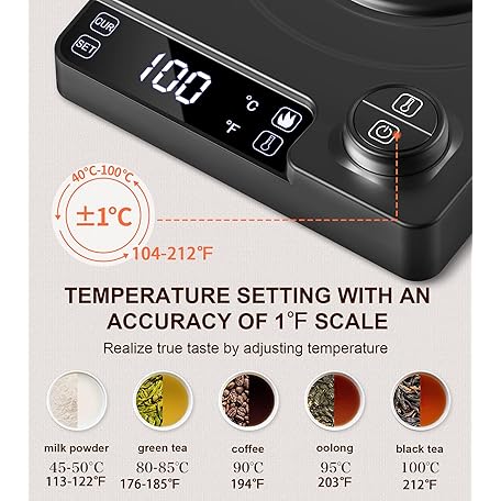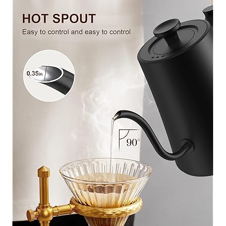 Gooseneck Electric Kettle with ±1℉ Precision Temperature Control for Pour Over Coffee & Tea, Rapid Boil, 304 Stainless Steel, Built-in Brew Timer, 1200W/1.0L