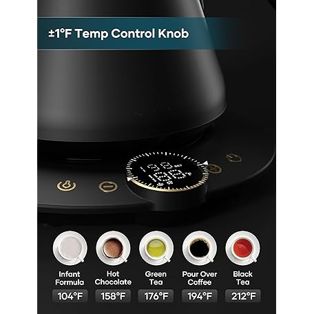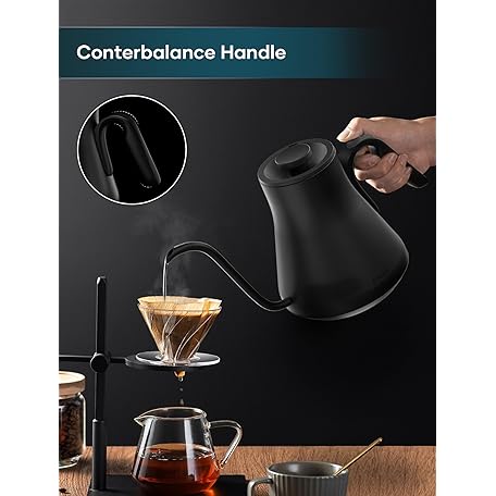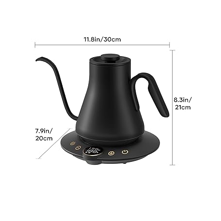 Thông tin sản phẩm Gooseneck Electric Kettle with ±1℉ Temperature Control for Pour Over Coffee & Tea, Quick Heating, BPA-Free Stainless Steel, Built-in Brew Timer, 1500W/0.9L (Ebony Black)