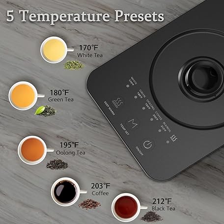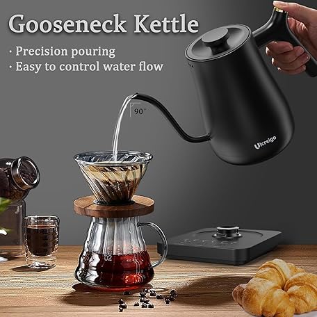 Thông tin sản phẩm Gooseneck Electric Kettle,Ulcreigo Tea Kettle for Boiling Water, Temperature Control with 5 Variable Presets,Hot Water Boiler Heater for Pour Over Coffee, Keep Warm 2 Hours,304 Stainless Steel(Black)