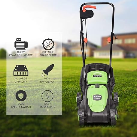 Thông tin sản phẩm Goplus Lawn Mower, 13 Inch 2-in-1 Electric Lawn Mower with Grass Collection Bag, Folding Handle, Adjustable Cutting Height, Corded Push Lawn Mowers for Garden Yard, 12 Amp (Green)