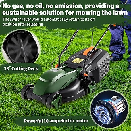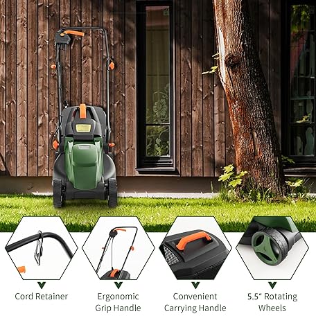 Thông tin sản phẩm Goplus Lawn Mower, Electric Lawn Mowers with Grass Collection Box, 10 AMP Motor, 13" Cutting Deck, 3 Adjustable Cutting Positions, Walk-Behind Small Corded Lawnmower for Garden Farm Yard