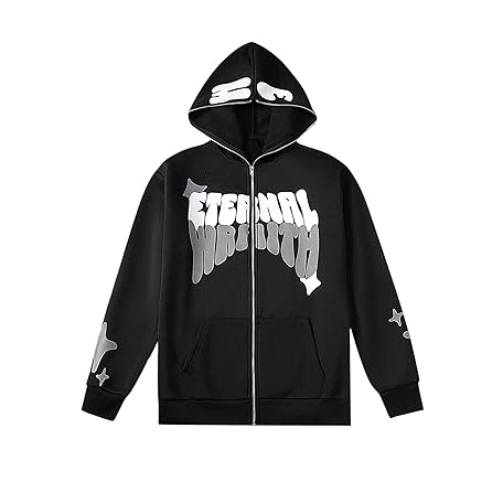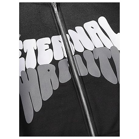 GORGLITTER Men's Full Zip Y2K Hoodie Graphic Lettter Print Long Sleeve Fashion Jacket Hooded Sweatshirt