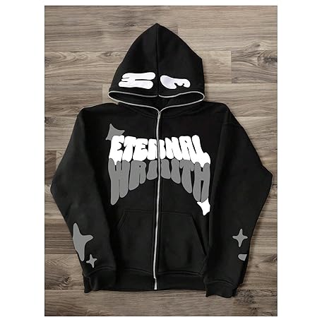 • GORGLITTER Men's Full Zip Y2K Hoodie Graphic Lettter Print Long Sleeve Fashion Jacket Hooded Sweatshirt
