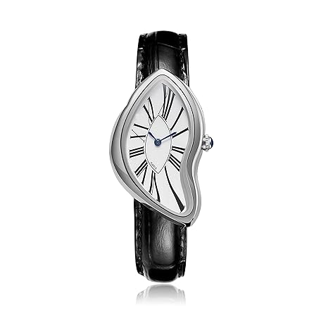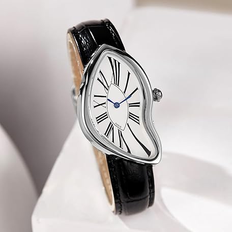 Gosasa Creative Melting Luxury Men's Watch Stylish Analog Quartz Wristwatch with Genuine Leather Strap, Roman Numeral Dial, Waterproof, Business Casual Dress Watch