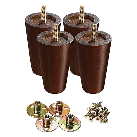 GOSCHE Wood Furniture Legs 4 Inch, Round Brown Sofa Legs Set of 4, Chair Legs, Replacement Couch Legs for Armchair, Cabinet, Mid Century Modern Dresser Or Home DIY Projects Bun Feet