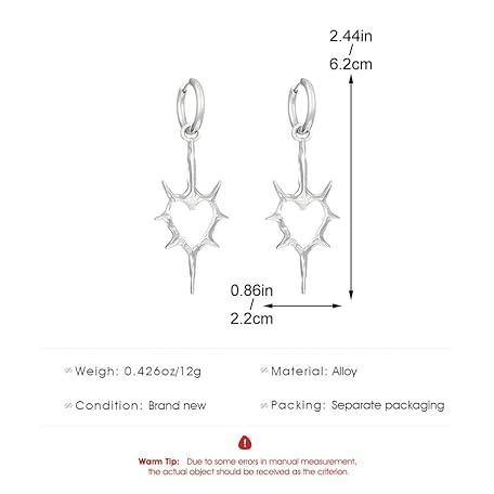 Sản phẩm Gothic Punk Heart Shape Spike Earrings Huggie Hoop Earrings Halloween Christmas New Year Goth Jewelry Gift for Women đang được bán với giá ưu đãi là $6.5291 tại nước Mỹ.