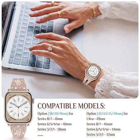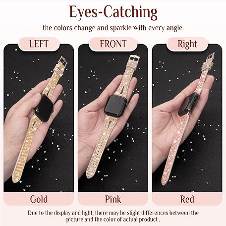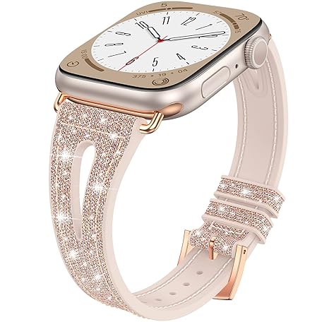 Sản phẩm Goton Bling Silicone Band for Apple Watch 46mm 45mm 44mm 42mm 41mm 40mm Series 11/10/9/8/7/6/5/4/SE 3/2/1, Soft & Breathable Glitter Strap for Women, Stylish, Adjustable, Comfortable Fit, Sparkle đang được bán với giá ưu đãi là $14.1155 tại nước Mỹ.
