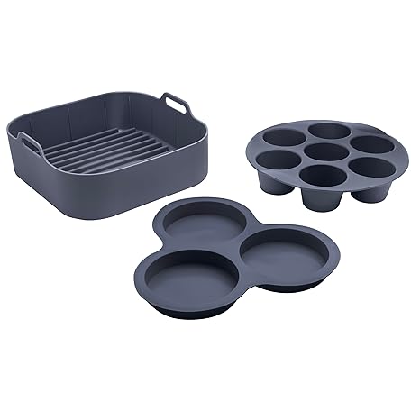 Gourmia Air Fryer Accessories Set - 3 Piece Silicone, Liner, Egg Bite Cooker, 7-Hole Cupcake Mold, BPA-Free, Nonstick, Heat Resistant 445°F, Dishwasher Safe, Food Grade