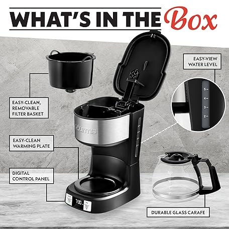Thông tin sản phẩm Gourmia Drip Coffee Maker – 5 Cup, One-Touch Brew, Pause & Serve, Adjustable 4 Hr Keep Warm, EZ-View Water Window, Black