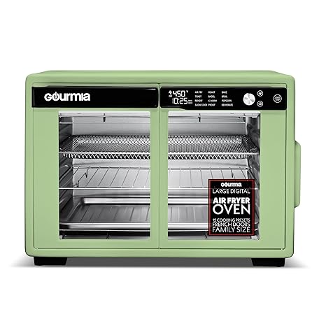 Sản phẩm Gourmia French Door Digital Air Fryer Oven - XL 37QT Capacity, 12 Presets, FryForce 360° Tech, Dehydrate, Proof, Slow Cook, Fits 13” Pizza, 1700W, Green đang được bán với giá ưu đãi là $156.5785 tại nước Mỹ.