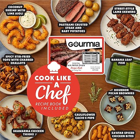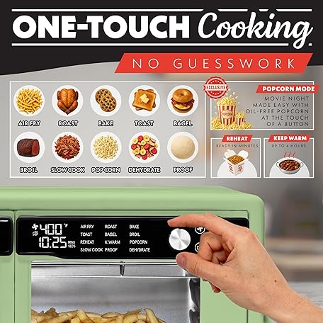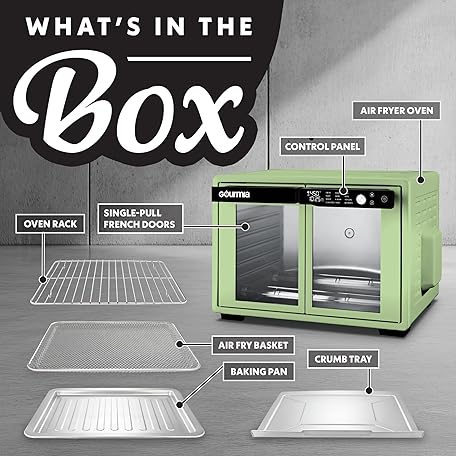 Thông tin sản phẩm Gourmia French Door Digital Air Fryer Oven - XL 37QT Capacity, 12 Presets, FryForce 360° Tech, Dehydrate, Proof, Slow Cook, Fits 13” Pizza, 1700W, Green