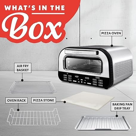 Gourmia Indoor Pizza Oven Air Fryer Toaster – 1800W Countertop Multi-Cooker with Pizza Stone, Digital Controls & 6 Presets, Stainless Steel