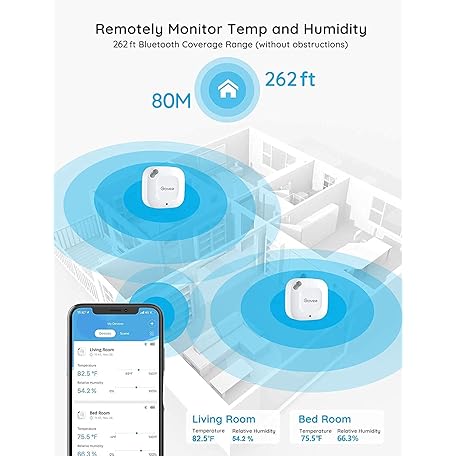 Thông tin sản phẩm Govee Bluetooth Hygrometer Thermometer, Wireless Thermometer, Mini Humidity Sensor with Notification Alert, Data Storage and Export, 262 Feet Connecting Range