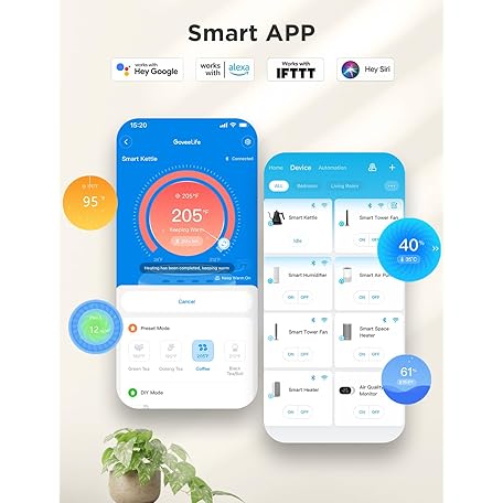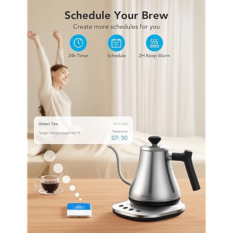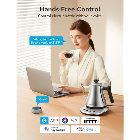 Thông tin sản phẩm GoveeLife Smart Electric Kettle, 0.8L WiFi Gooseneck Kettle Compatible with Alexa, 5 Modes for Use, 3-minute Fast Heating and 2H Keep Warm, Auto-Shut off for Safety, Stainless Steel, Silver