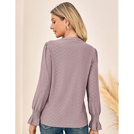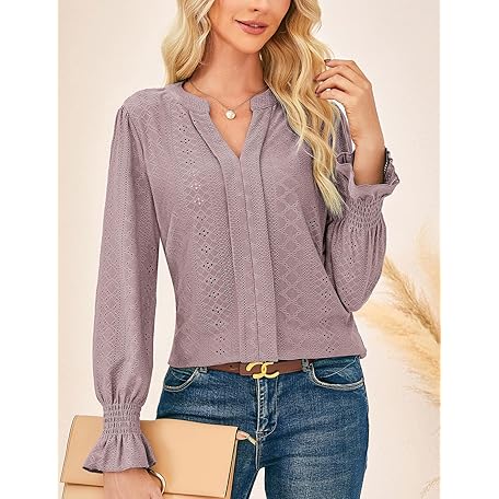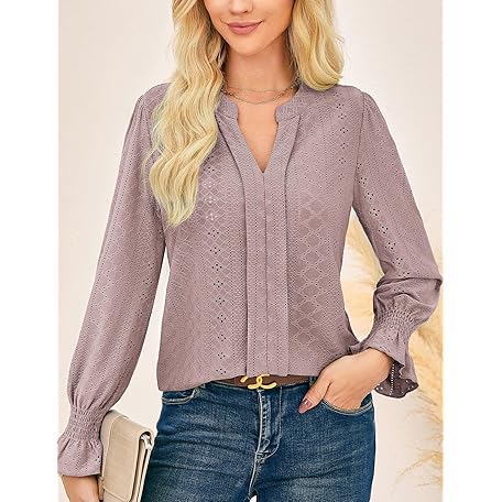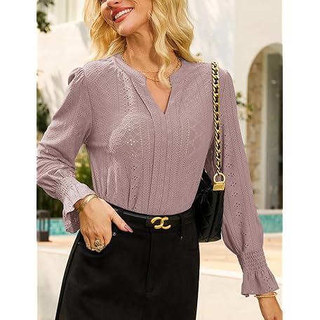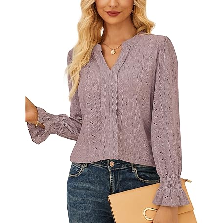 • GRACE KARIN Women's Long Sleeve Shirts 2025 V Neck Dressy Casual Eyelet Tops Fall Lace Embroidered Blouses
