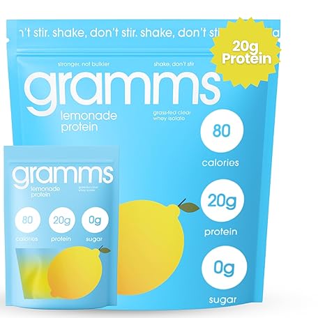 Thông tin sản phẩm GRAMMS Clear Protein Powder Packets 20G Protein for Women & Men & Lactose Free, Grass-Fed Whey Isolate, Gluten Free, Zero Sugar, Gut Friendly, Non-Bloating (Lemonade-10 Servings)