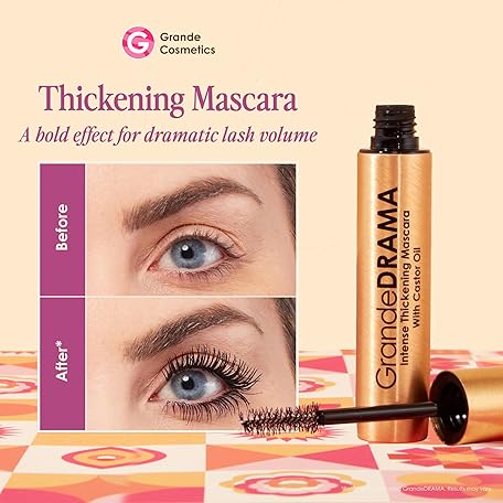 Thông tin sản phẩm Grande Cosmetics GrandeDRAMA Intense Thickening Black Mascara with Castor Oil, Volumizing, Conditioning, Buildable formula (0.32 oz)