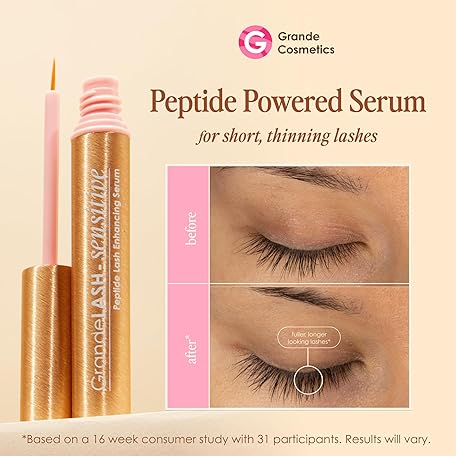 Grande Cosmetics GrandeLASH-Sensitive Peptide Infused Lash Serum for Fuller, Longer-Looking Natural Eyelashes, Enhancing Treatment with Nourishing Botanicals, Cruelty-Free