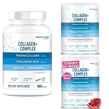 Granions Marine Collagen Lemon Powder, Collagen Complex Calcium Magnesium and Marine Collagen Pomegranate Powder Bundle