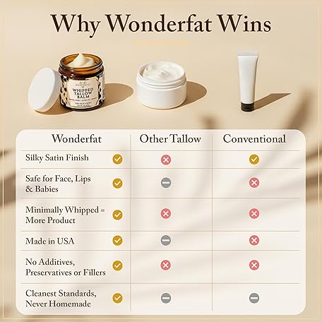 Thương hiệu Wonderfat là cái tên nổi tiếng được rất nhiều khách hàng trên thế giới chọn lựa. Với kiểu dáng đẹp mắt, sang trọng, sản phẩm Grass-Fed Beef Tallow Balm for Skin & Face – Whipped Tallow Moisturizer with Manuka Honey, Mango Butter, Jojoba Oil & Vitamin E – Deep Hydration for Dry, Sensitive Skin – Small-Batch Formula – 3 oz là sự lựa chọn hoàn hảo nếu bạn đang tìm mua một món cho riêng mình.