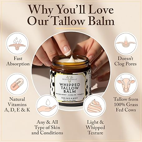 Sản phẩm Grass-Fed Beef Tallow Balm for Skin & Face – Whipped Tallow Moisturizer with Manuka Honey, Mango Butter, Jojoba Oil & Vitamin E – Deep Hydration for Dry, Sensitive Skin – Small-Batch Formula – 3 oz đang được bán với giá ưu đãi là $36.3297 tại nước Mỹ.