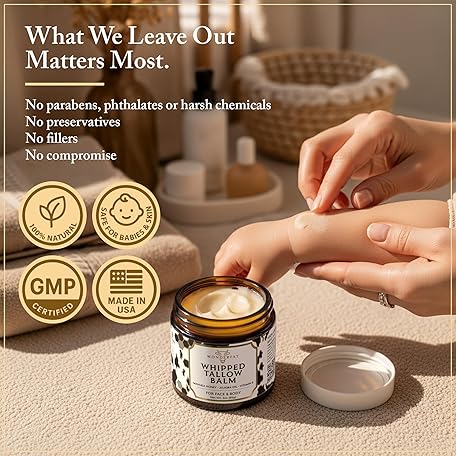 Thông tin sản phẩm Grass-Fed Beef Tallow Balm for Skin & Face – Whipped Tallow Moisturizer with Manuka Honey, Mango Butter, Jojoba Oil & Vitamin E – Deep Hydration for Dry, Sensitive Skin – Small-Batch Formula – 3 oz