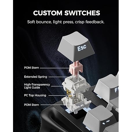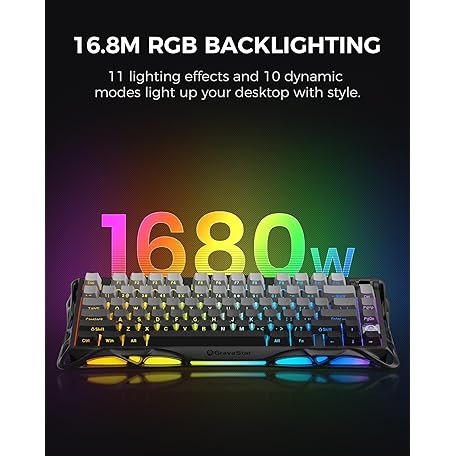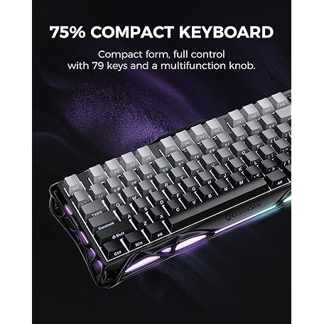 Thông tin sản phẩm GravaStar Mercury K1 75% Wireless Mechanical Gaming Keyboard, Aluminum Alloy, Gasket Compact Custom Keyboard Hot-Swap Socket, Linear Switches, RGB Backlit - Gradient Black