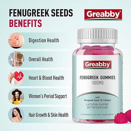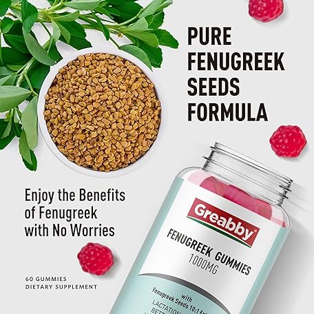 Thông tin sản phẩm GREABBY Fenugreek Gummies 1000mg, Pure Organic Fenugreek Seeds Supplement for Breastfeeding, Healthy Lactation Support, Non-GMO (60 Vegan Gummies)