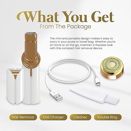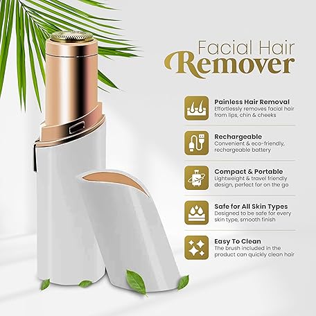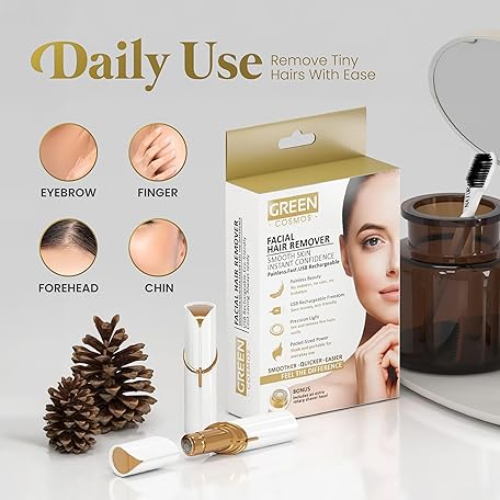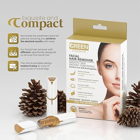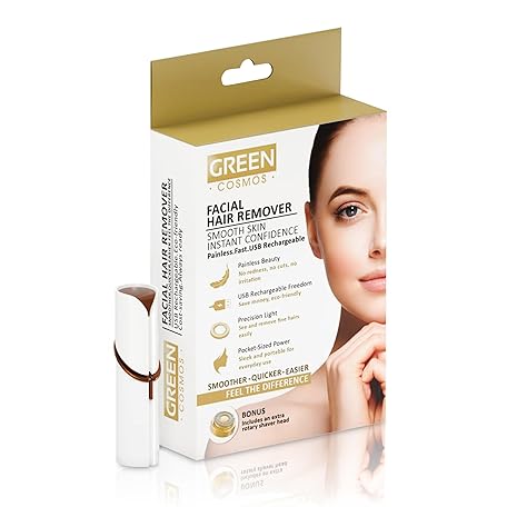 Green Cosmos Electric Facial Hair Removal Device for Women, USB Rechargeable, Painless Face, Lip, Chin Hair Remover with Replacement Heads