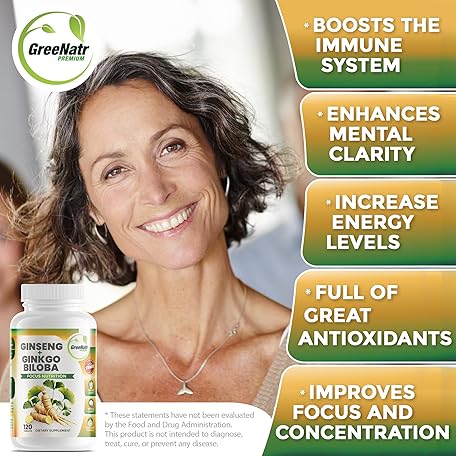 Thông tin sản phẩm GreeNatr Ginko Biloba & Panax Ginseng Supplement - Red Ginseng Brain Supplement for Memory and Focus - Ginkgo Biloba Supplements for Good Vision, Immune System and Improved Blood Flow - 120 Tablets