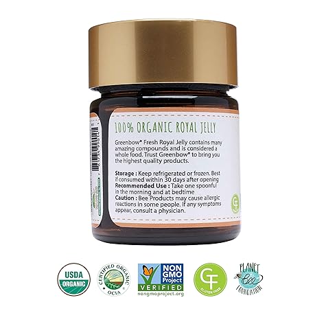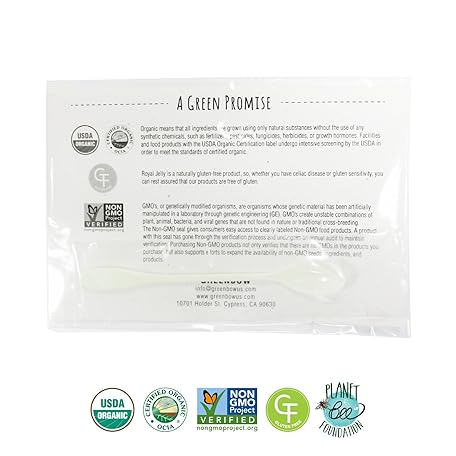 Thông tin sản phẩm Greenbow Organic Fresh Royal Jelly - 100% USDA Certified Organic, Non-GMO, Halal, Pure, Gluten Free - One of The Most Nutrition Packed - (70g)