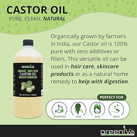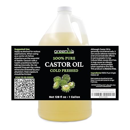 Thông tin sản phẩm GreenIVe Castor Oil Organically Grown 100% Pure 128oz (1 Gallon) Bottle Cold Pressed, Hexane Free, Eyelash and Eybrow Growth Serum, Skin Moisturizer Detox and Wraps