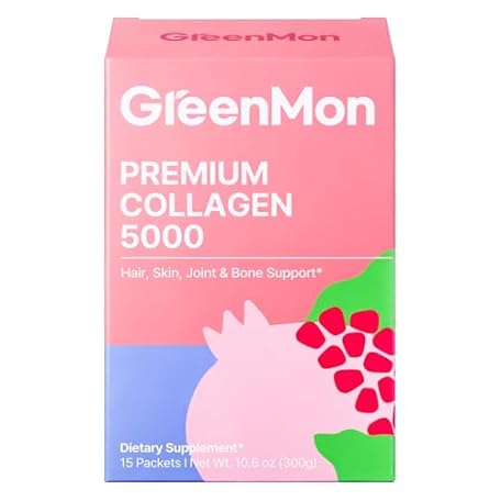 GREENMON Premium Collagen 5000 – Marine Collagen Peptides 5000mg, 300DA Ultra Low Molecular – Pomegranate Extract 40%, Hyaluronic Acid – Skin, Hair, Nail Support – Non-GMO, No Preservatives