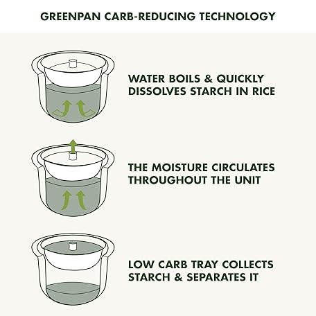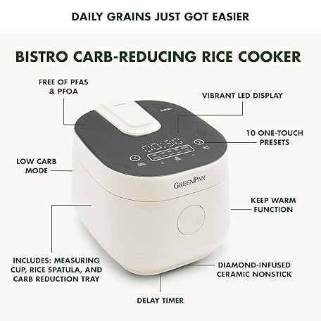 Thông tin sản phẩm GreenPan Carb Reducing Electric Rice Cooker, 4 Cups Uncooked/8 Cooked Rice, 10 Presets, LED Display, Healthier Meals, Delay Timer, PFAS-Free Ceramic Nonstick Removable Bowl, Cool Touch, Steam, Cream