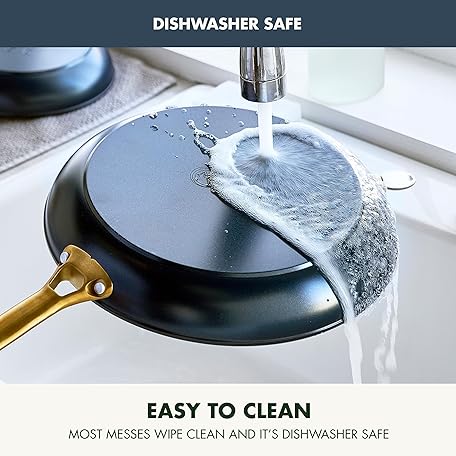 Thông tin sản phẩm GreenPan Hard Anodized Healthy Ceramic Nonstick 8" 10" and 12" 3 Piece Frying Pan Skillet Set, Gold Handle, Induction, PFAS-Free, Dishwasher Safe, Oven Safe, Twilight Blue