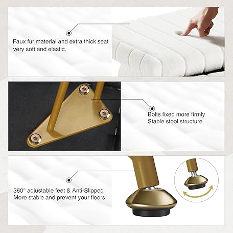 Thông tin sản phẩm Greenstell Vanity Stool Chair Faux Fur with Storage, 15.7"L x 11.8"W x 19.4"H Soft Ottoman 4 Metal Legs with Anti-Slip Feet, Furry Padded Seat, Modern Multifunctional Chairs for Makeup, Bedroom White
