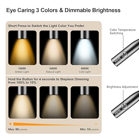 Thông tin sản phẩm Gritin LED Neck Reading Light,Book Light for Reading in Bed-Eye Caring 3 Colors, Dimmable Brightness, Bendable Arms, 80+Hrs Runtime, Neck Round Design, Comfortable &Lightweight for Crafting, Knitting