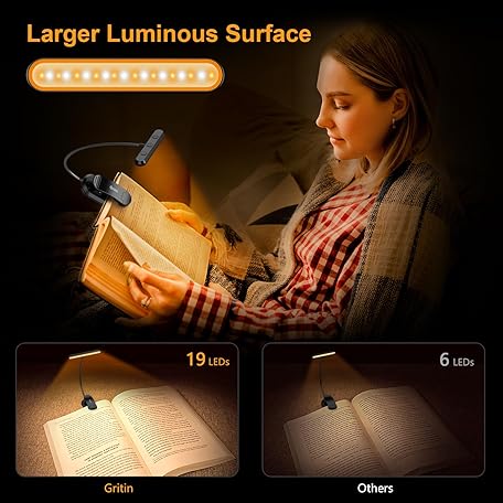 Thông tin sản phẩm Gritin Rechargeable Book Light for Reading in Bed with 19 LED &Memory Function-Eye Caring 3 Color Temperatures,5 Brightness Levels,80 Hrs Runtime Flexible Goose Neck Clip on Light for Book Lovers