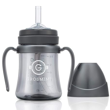 GROSMIMI Spill Proof no Spill Magic Sippy Cup with Straw with Handle for Baby and Toddlers, Customizable, PPSU, BPA Free 6 oz (Charcoal)