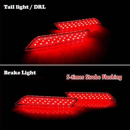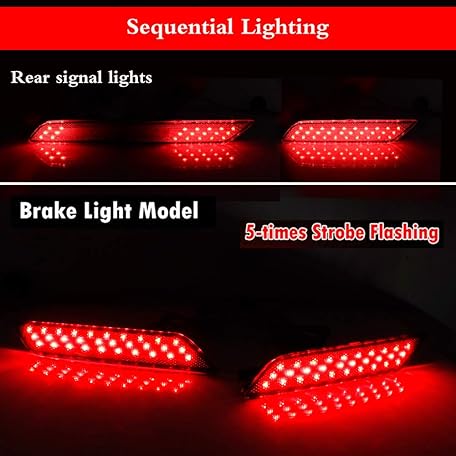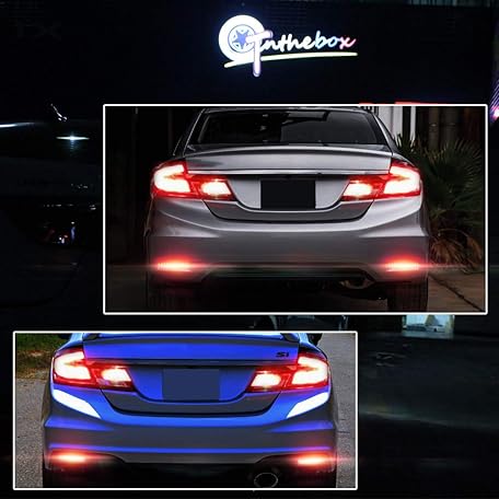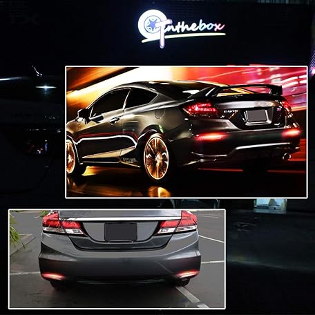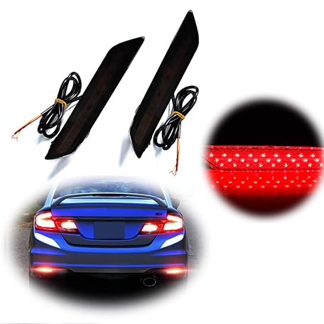 GTINTHEBOX for 2013 2014 2015 Honda Civic Sedan Rear Bumper Reflector Brake Tail Light Sequential Turn Signal Lamps Strobe Brake Lighting Smoked Lens Red LED