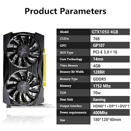 Thông tin sản phẩm GTX 1050 4G Graphics Card, 128 Bit GDDR5 PCI Express 3.0 Graphics Card, DVI VGA HDMI Graphics Card with Twin Freeze Fans