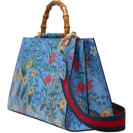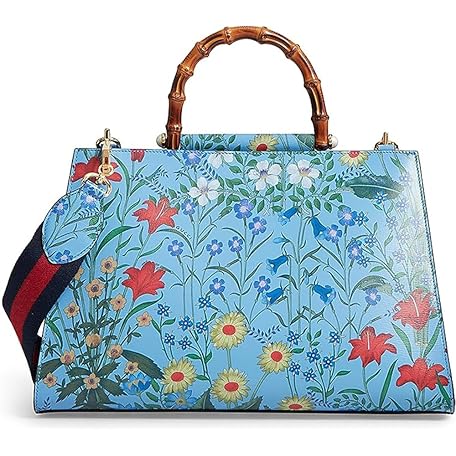 Gucci Flora Azure Shanghai Blue Large Floral Handbag Italy Bag Handbag Flower Bamboo New