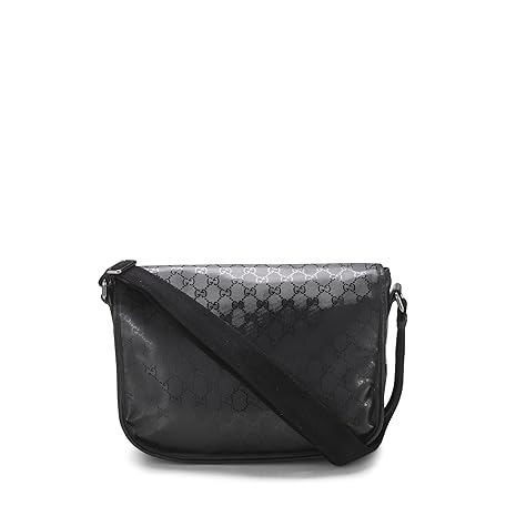 Gucci, Pre-Loved Black GG Imprime Buckle Flap Messenger, Black