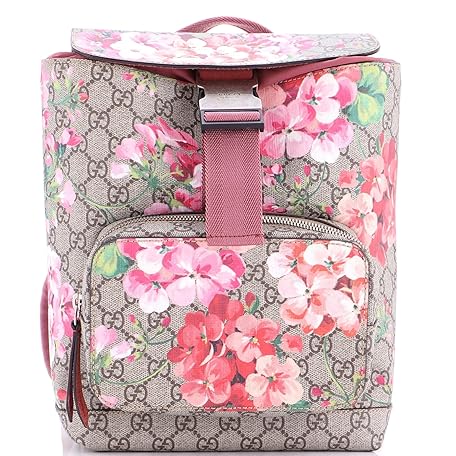 Gucci, Pre-Loved Buckle Backpack Blooms Print GG Coated Canvas Small, Pink
