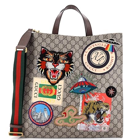 Gucci Pre-Loved Courrier Convertible Soft Open Tote GG Coated Canvas with Applique North South, Brown