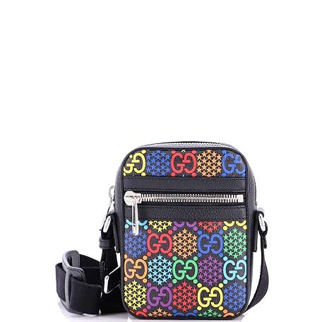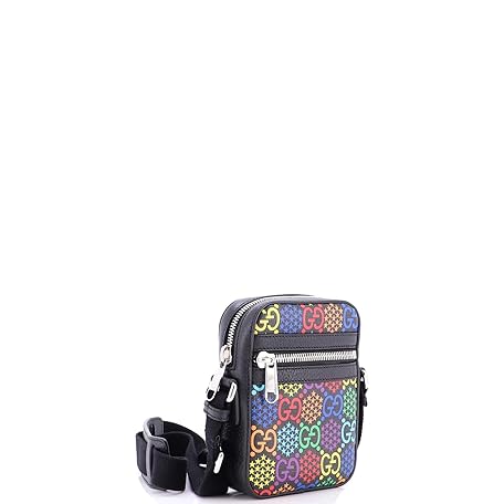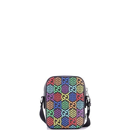 Gucci, Pre-Loved Front Zip Messenger Bag Psychedelic Print GG Coated Canvas Mini, Black