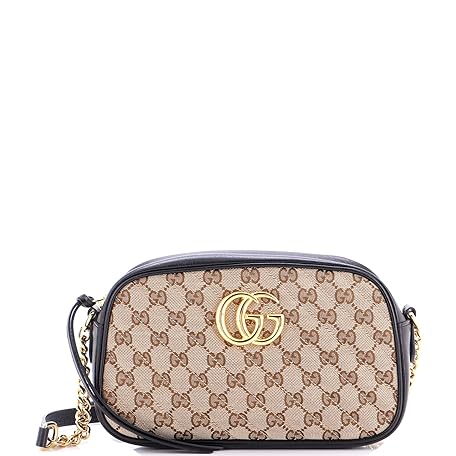 Gucci Pre-Loved GG Marmont Shoulder Bag Diagonal Quilted GG Canvas with Leather Small, Black